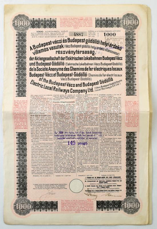 Budapest 1914. "A Budapest-váczi és Budapest-gödöllői helyi érdekű vil... https://www.darabanth.com/de/460-Fernauktion/460.0/Numismatik/Aktien-und-Tickets~2000006/Budapest-1914-A-Budapest-vaczi-es-Budapest-godolloi-helyi-erdeku-villamos-vasutak~II3082976