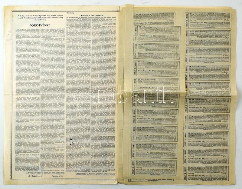 Beschreibung: Budapest 1914. "A Budapest-váczi és Budapest-gödöllői helyi érdekű villamos vasutak részvénytársaság" elsőbbségi kötvénykölcsöne szelvényekkel T:VF