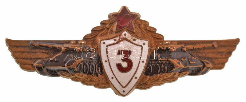 ~1958-1968. Magyar Néphadsereg III. osztályú harckocsivezető festett, zománcozott bronz kitüntető jelvény (26x64mm) T:XF,VF kopott festés, kis zománchiba