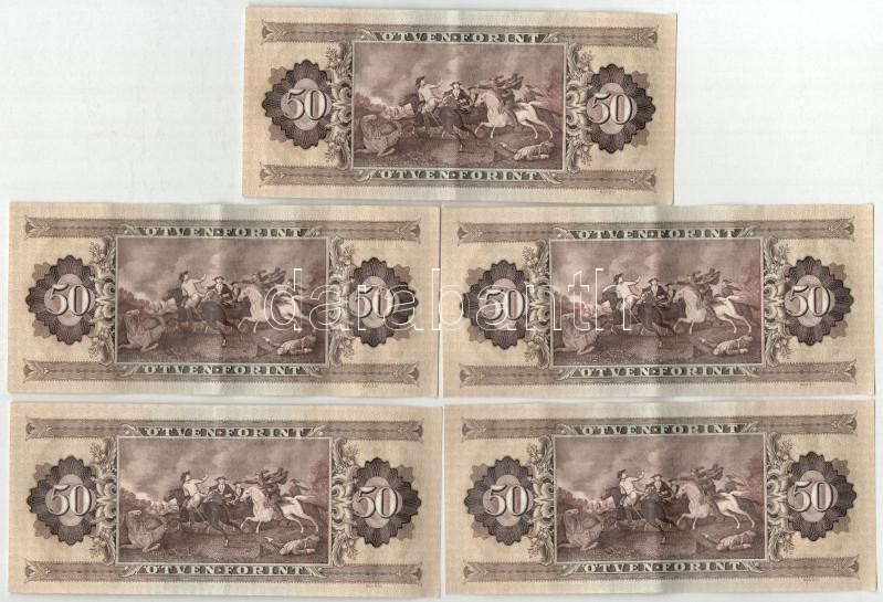 Beschreibung: 1980. 50Ft (5x) sorszámkövetők és egyugrású sorszámmal "D 080 024462 - D 080 024467" T:F mind szép papírral Adamo F22