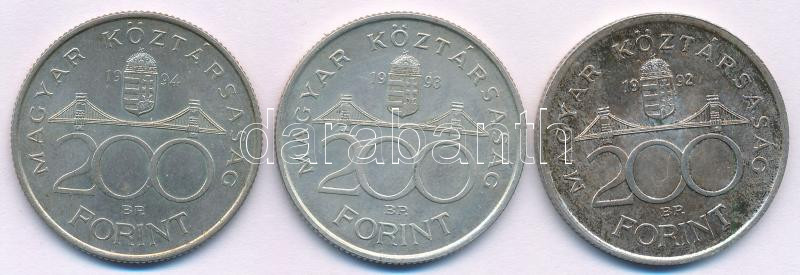 Beschreibung: 1992. 200Ft Ag "MNB" + 1993. 200Ft Ag "MNB" + 1994. 200Ft Ag "Deák" T:AU,XF