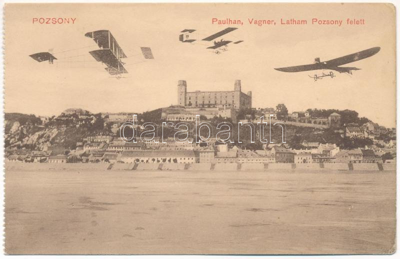Pozsony, Pressburg, Bratislava; vár, Paulhan, Vagner, Latham repülőgép... https://www.darabanth.com/de/461-Fernauktion/461.0/Ansichtskarten/Slowakei~1000105/Pozsony-Pressburg-Bratislava-var-Paulhan-Vagner-Latham-repulogepei-Pozsony-felett-castle-~II3095117