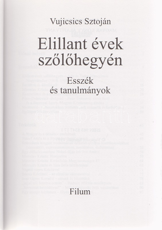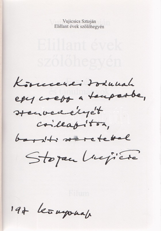 Elillant évek szőlőhegyén. Esszék és tanulmány... https://www.darabanth.com/de/461-Fernauktion/461.0/Bucher/Bucher-Andere-kuriositaten~2000044/Vujicsics-D-Sztojan-Elillant-evek-szolohegyen-Esszek-es-tanulmanyok-DedikaltBudapest-~II3098033