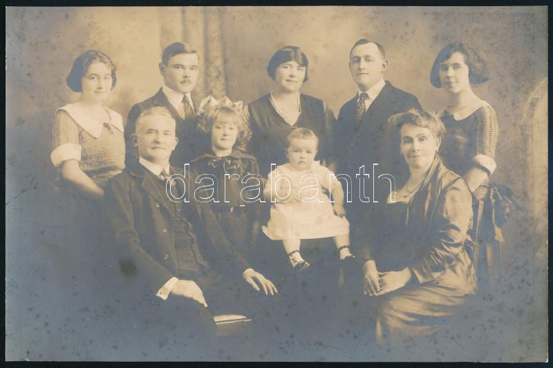 cca 1906 ,,Amerikába kivándorolt magyar család" feliratú vintage fotó, ezüst zselatinos fotópapíron, a használatból eredő (esetleges) kisebb hibákkal, 14x21,5 cm