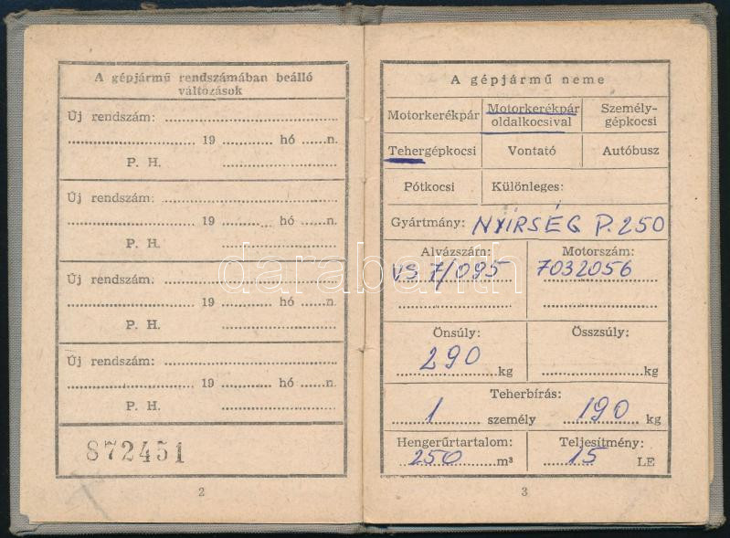 1967 Pannónia P250 Nyírség forgalmi engedély + kötelező biztosítási ig... https://www.darabanth.com/de/461-Fernauktion/461.0/Kunst-Dokumente-andere-Sammelgebiete/Dokument~1500020/1967-Pannonia-P250-Nyirseg-forgalmi-engedely-plus-kotelezo-biztositasi-igazolas~II3094678