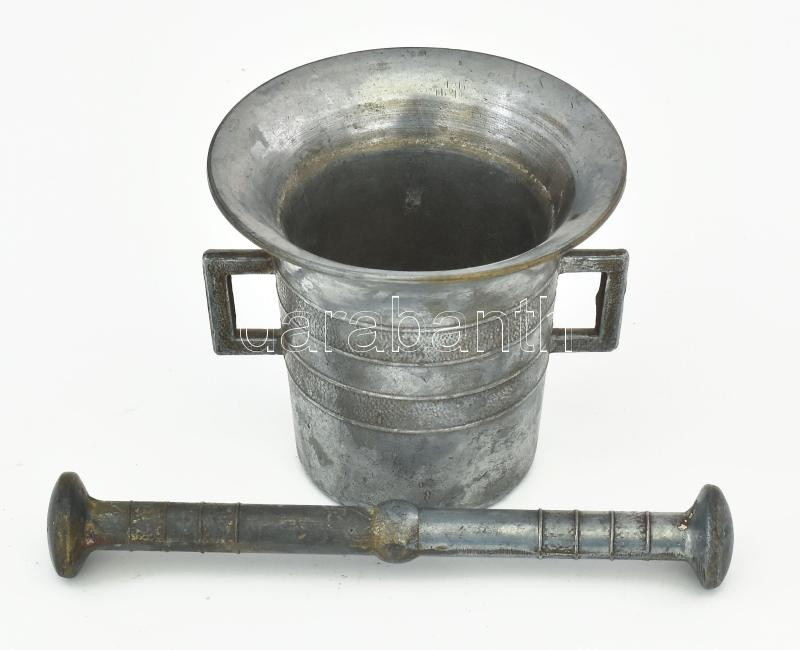 Fém mozsár törővel, m: 8,5 cm, törő h: 15 cm https://www.darabanth.com/de/461-Fernauktion/461.0/Kunst-Dokumente-andere-Sammelgebiete/Flohmarkt~1500014/Fem-mozsar-torovel-m-8-5-cm-toro-h-15-cm~II3099906