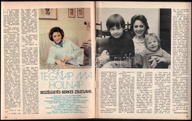 1982 Berkes Zsuzsa (műsorvezető,x3), Pogány Judit (színésznő), Koltai Róbert (színész, rendező), Eötvös Gábor (zenebohóc), és Eötvös Gáborné (artista, a Fővárosi Nagycirkusz egykori igazgatója) aláírásai az Ádám folyóirat 1982-es évfolyam 3. számán.