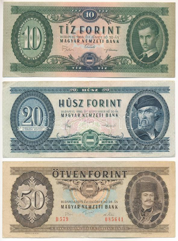 1969. 10Ft + 1975. 50Ft + 1980. 20Ft T:F szép, vagy erős papír https://www.darabanth.com/de/461-Fernauktion/461.0/Numismatik/Ungarische-Banknoten~500009/1969-10Ft-plus-1975-50Ft-plus-1980-20Ft-T-F-szep-vagy-eros-papir~II3092934