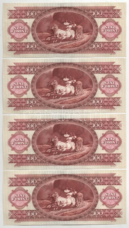 Beschreibung: 1984. 100Ft (4x) ebből 3db sorszámkövető, a negyedik egy kihagyással, mind fordított hátlapi alapnyomattal T:VF,F szép papír Adamo F35