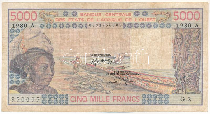 Western African ... https://www.darabanth.com/de/461-Fernauktion/461.0/Numismatik/Weltweit-Banknoten~500016/Nyugat-Afrikai-Allamok-1980-5000Fr-G2-950005-T-FWestern-African-States-1980-5000-Francs-G2~II3099950