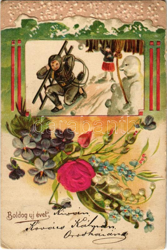 1907 Boldog Új évet! Dombornyomott üdvözlet hóemberrel és kéményseprőv... https://www.darabanth.com/de/462-Fernauktion/462.0/Ansichtskarten/GruC39Fkarten-Feste~1000082/1907-Boldog-Uj-evet-Dombornyomott-udvozlet-hoemberrel-es-kemenyseprovel-New-Year-greeting-~II3102187