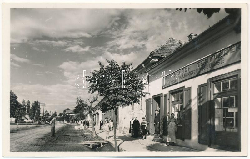 Beschreibung: Bethlen, Beclean; utca, Balogh Testvérek vaskereskedés üzlete / street, shop