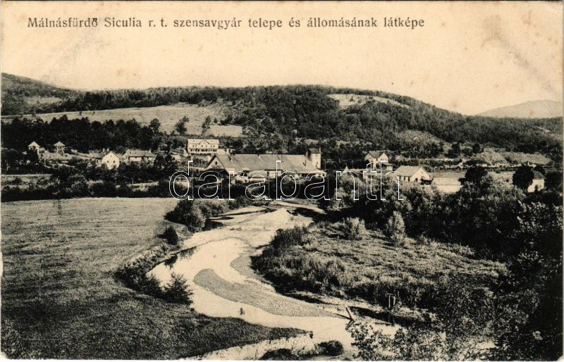 Beschreibung: Málnásfürdő, Malnas Bai; Siculia rt. szénsavgyár telepe és állomásának látképe. Adler Brassó No. 4. / soda factory (fl)