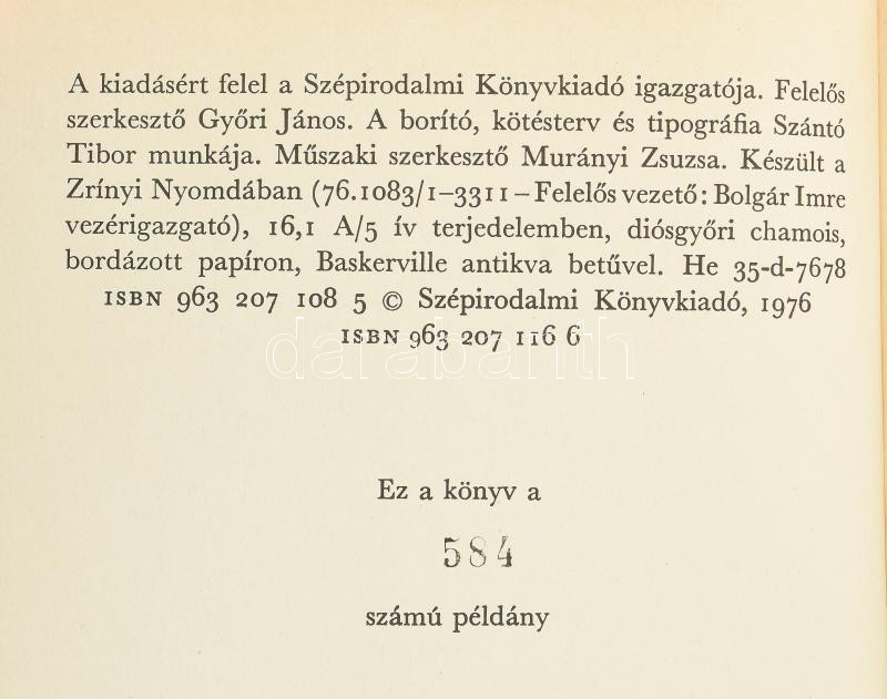 Heltai Gáspár: Ponciánus császár históriája. Nemeskürty István Gondozásában és tanumányával az 1633-as lőcsei kiadás alapján. Bp., 1976, Magyar Helikon. Bibliofil kiadás. Kiadói aranyozott egészbőr-kötés. Számozott, 584. számú példány.