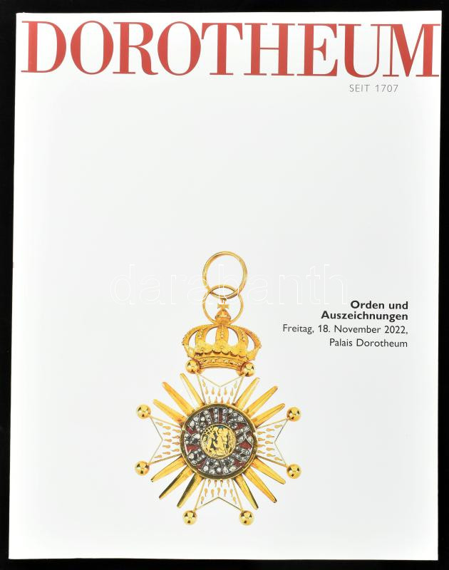 Dorotheum árverési katalógus, kitüntetések témában, 2022 https://www.darabanth.com/de/462-Fernauktion/462.0/Bucher/Bucher-Architektur-Kunst~2000042/Dorotheum-arveresi-katalogus-kituntetesek-temaban-2022~II3105060