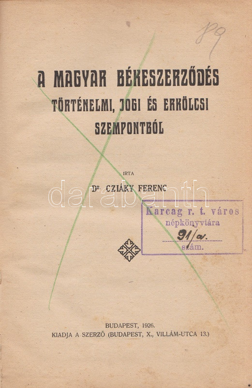 A magyar békeszerződés történelmi, jogi és erkölcsi szempontból.