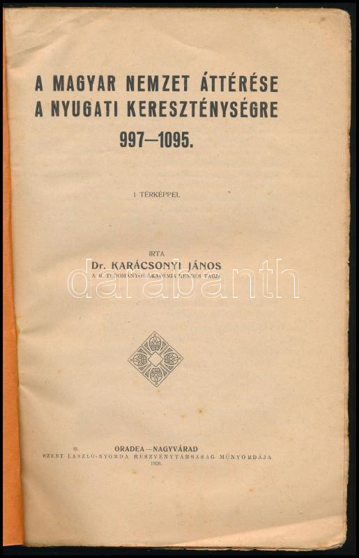 Karácsonyi János, Dr.: A magyar nemzet áttérése a nyugati kereszténységre 997-1095.