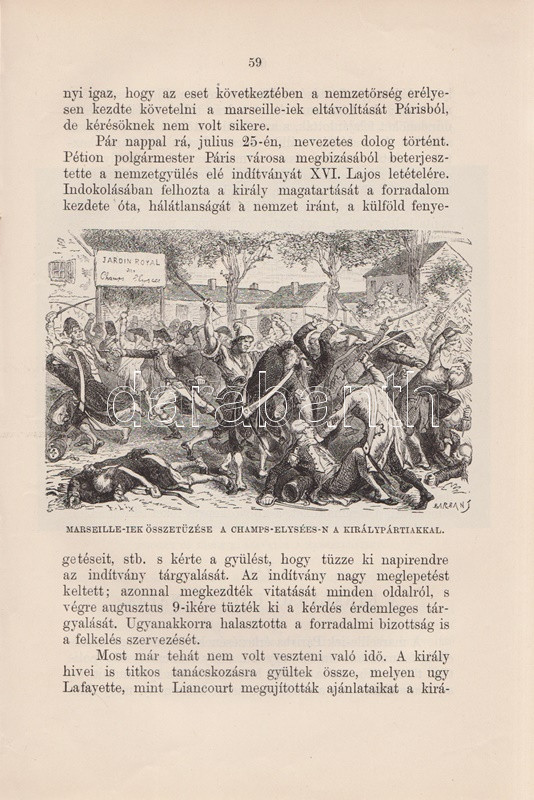 Várnai Sándor (1855-1913) újságírónak - pedagógiai és történelmi áttekintések írójának - olvasmányos stílusban megírt krónikája a francia forradalomról, az utolsó rendi gyűlés megnyitásától Robespierre bukásáig (1789-1794). Oldalszámozáson belül szövegközti és egész oldalas illusztrációkkal gazdagon díszítve.
