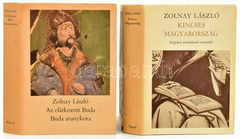 Zolnay László 2 kötete: Kincses Magyarország. Középkori művelődésünk történetéből. Bp., 1978, Magvető. Második, javított kiadás. Kiadói egészvászon-kötés, kiadói kissé szakadt papír védőborítóban. + Zolnay László: Az elátkozott Buda - Buda aranykora. Bp., 1982, Magvető. Fekete-fehér képekkel illusztrált. Kiadói egészvászon-kötés, kiadói papír védőborítón apró szakadással, jó állapotban.