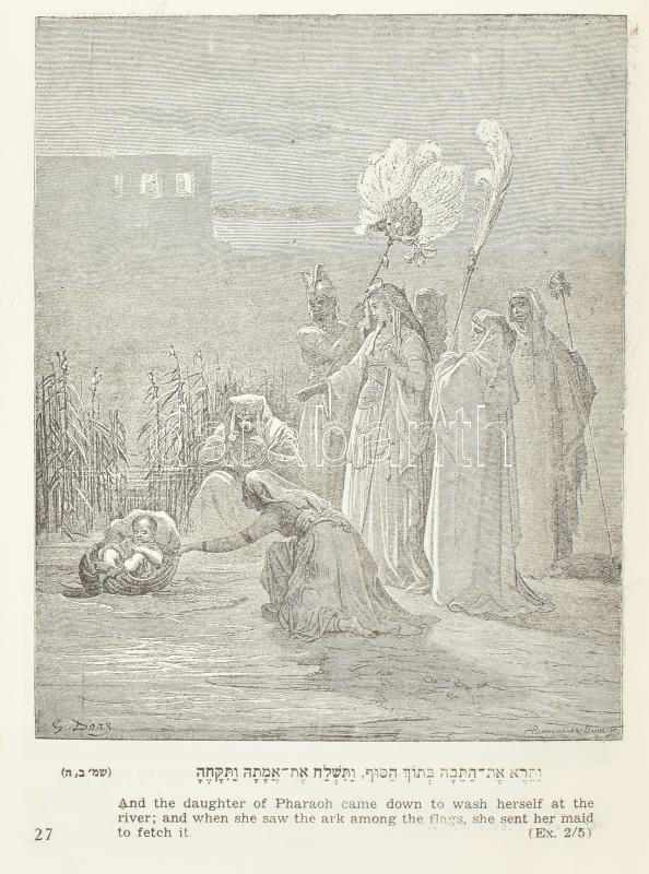 Doré: The Bible in pictures. Gustave Dore. Angol - héber kétnyelvű. Zsidó Biblia, 125 képet tartalmazó könyv. Tel Aviv. ca 1950. Aranyozott dombornyomott egészbőr kötésben