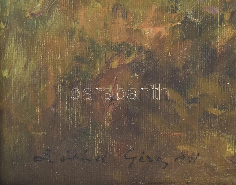 Beschreibung: Zórád Géza (1896-1959): Juhász nyájával, 1941. Olaj, vászon, jelzett. Dekoratív, kissé sérült fakeretben, 60x80 cm