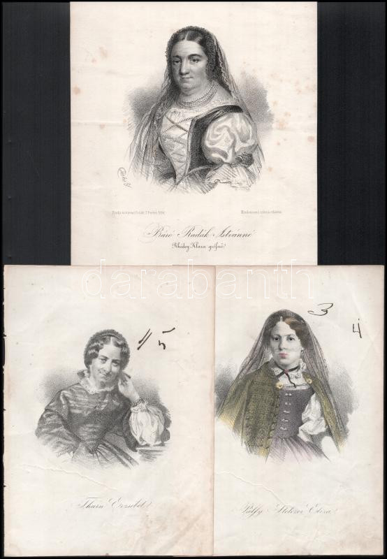 Beschreibung: 3 nemes asszony kőnyomatos portréja: Thurn Erzsébet, Pálffy Stelczer Eliza, báró Radák Istvánné Rhédey Klára grófnő 15x20 cm