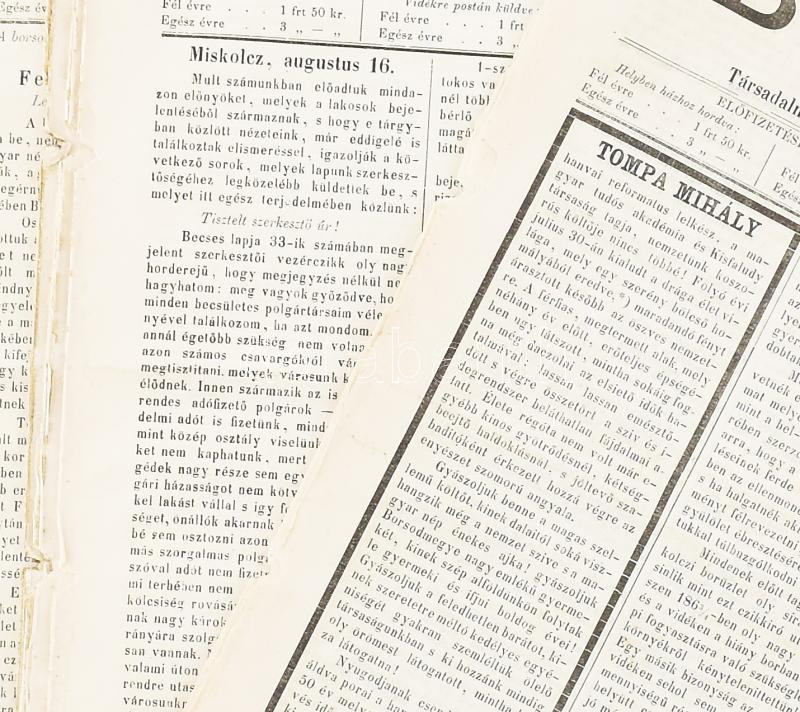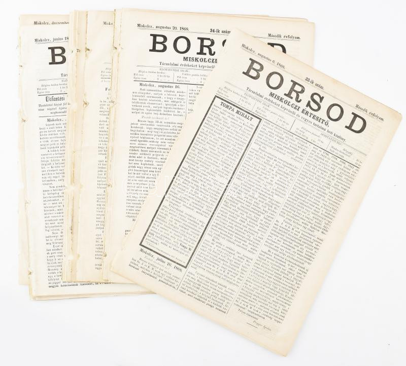 1868 Borsod. Miskolczi értesítő. II. évf. 32-50. számok. 1868 augusztus-december Miskolc, Rácz Ádám-ny. Mind a 18 szám jó állapotban. Az első számban Tompa Mihály gyászhírével
