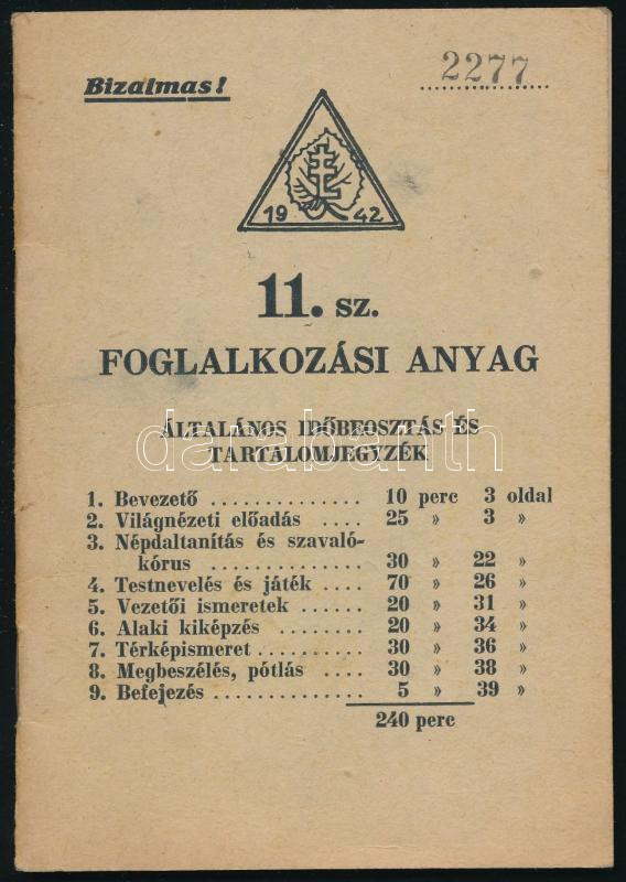 1942 Levente oktatási anyag. 11. sz. fogalkozási anyag. Bizalma, sorsz... https://www.darabanth.com/de/462-Fernauktion/462.0/Kunst-Dokumente-andere-Sammelgebiete/Drucksachen~2000013/1942-Levente-oktatasi-anyag-11-sz-fogalkozasi-anyag-Bizalma-sorszamozott-44p-papirboritoval~II3104638