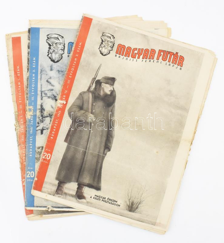 1943 Magyar Futár, Rajniss Ferenc lapja 3 db száma: III. évf. 1., 2., ... https://www.darabanth.com/de/462-Fernauktion/462.0/Kunst-Dokumente-andere-Sammelgebiete/Drucksachen~2000013/1943-Magyar-Futar-Rajniss-Ferenc-lapja-3-db-szama-III-evf-1-2-3-sz-Valtozo-allapotban-~II3109186
