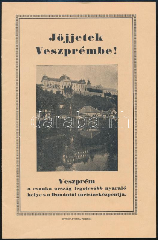 cca 1930 Jöjjetek Veszprémbe. A Csonka-Magyarország legolcsóbb nyaraló... https://www.darabanth.com/de/462-Fernauktion/462.0/Kunst-Dokumente-andere-Sammelgebiete/Drucksachen~2000013/cca-1930-Jojjetek-Veszprembe-A-Csonka-Magyarorszag-legolcsobb-nyaralo-helye-46p-kepes-nyomtatvany~II3110984