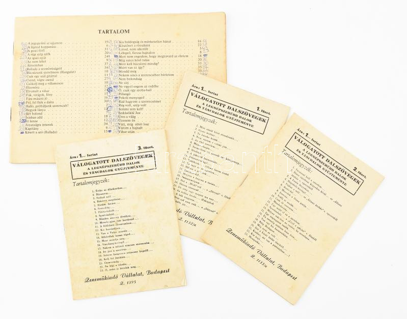 cca 1960 3 db válogatott dalszövegek füzet + könnyűzenei kottafüzet https://www.darabanth.com/de/462-Fernauktion/462.0/Kunst-Dokumente-andere-Sammelgebiete/Drucksachen~2000013/cca-1960-3-db-valogatott-dalszovegek-fuzet-plus-konnyuzenei-kottafuzet~II3111133