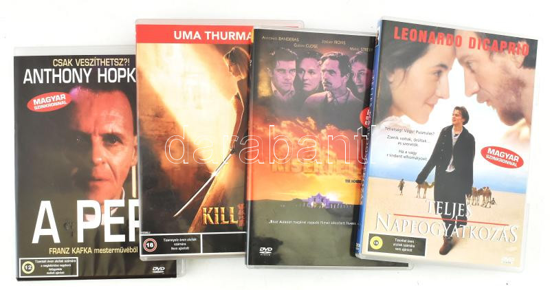Beschreibung: 4 darab játékfilmes DVD: A per, Kill Bill 2., Kísértetház, Teljes Napfogyatkozás