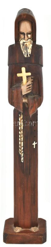 Beschreibung: Figurális asztali kegytárgy. Faragott fa, műanyag, kopással, m: 42 cm