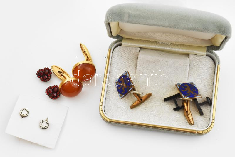 Beschreibung: Régi mandzsetták: gránátköves, borostyános, zománcos,
