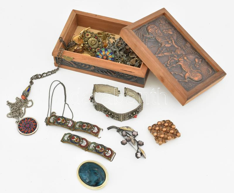 Vegyes bizsu ékszerek fa ládikában keleti ékszerek, stb https://www.darabanth.com/de/462-Fernauktion/462.0/Kunst-Dokumente-andere-Sammelgebiete/Flohmarkt~500014/Vegyes-bizsu-ekszerek-fa-ladikaban-keleti-ekszerek-stb~II3107684