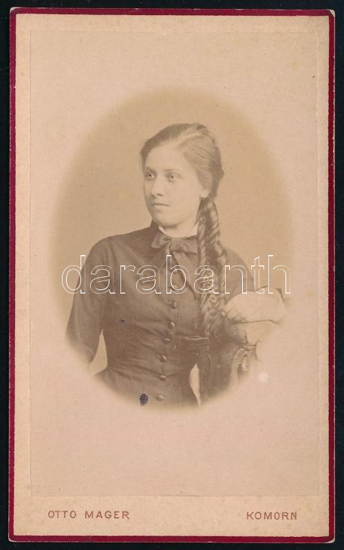 Beschreibung: cca 1880 Síkabonyi Angyal Karolina portréja, keményhátú fotó Mager Ottó komáromi műterméből, 10,5×6,5 cm