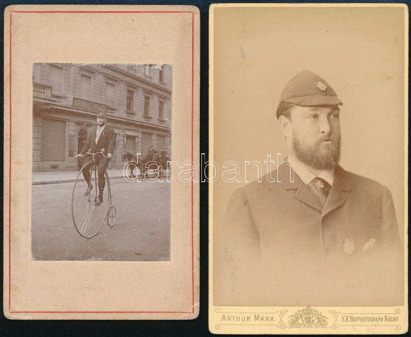 cca 1890 Velocipéden közlekedő bicikliversenyző és portréja. két vizit... https://www.darabanth.com/de/462-Fernauktion/462.0/Kunst-Dokumente-andere-Sammelgebiete/Foto~500023/cca-1890-Velocipeden-kozlekedo-bicikliversenyzo-es-portreja-ket-vizitkartya~II3111209