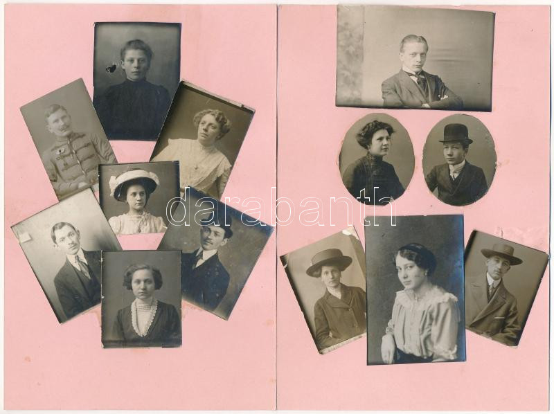 cca 1910 Portré-kollázsok, össz. 13 db kisebb méretű fotó két kartonla... https://www.darabanth.com/de/462-Fernauktion/462.0/Kunst-Dokumente-andere-Sammelgebiete/Foto~500023/cca-1910-Portre-kollazsok-ossz-13-db-kisebb-meretu-foto-ket-kartonlapra-ragasztva-karton~II3110473
