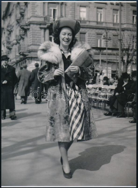 cca 1941 Escher Károly (1890-1966) budapesti fotóriporter és fotóművész felvétele (Muráti Lili színésznő a pesti korzón), 1 db modern nagyítás a néhai FOTÓ újság (1954-1989) archívumából 1 db modern nagyítás, jelzés nélkül, 21x15 cm