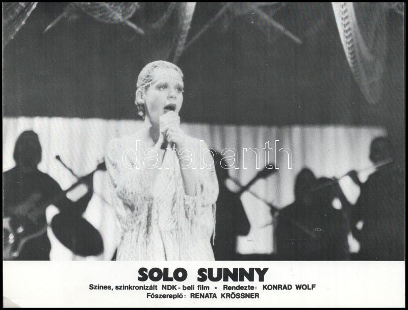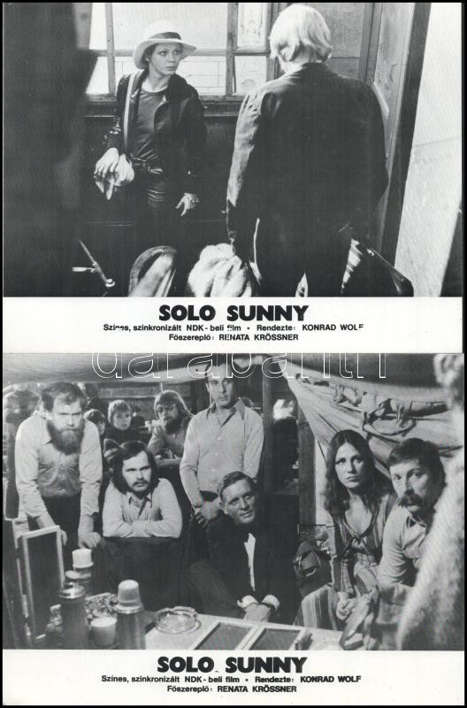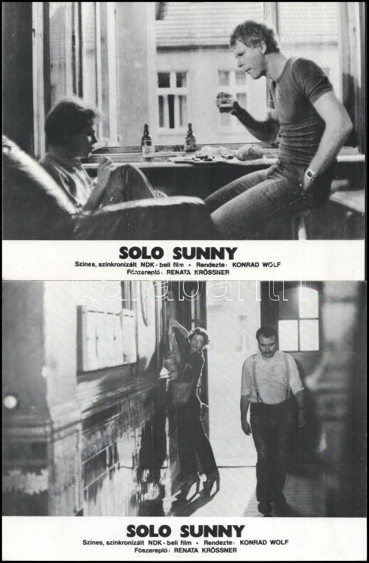 cca 1980 ,,Solo Sunny" című NDK-beli film jelenetei és szereplői, 5 db produkciós filmfotó (vitrinfotó, lobbyfotó) nyomdatechnikával sokszorosítva kartonpapírra, egyoldalas nyomással, a használatból eredő (esetleges) kisebb hibákkal, 18x24 cm