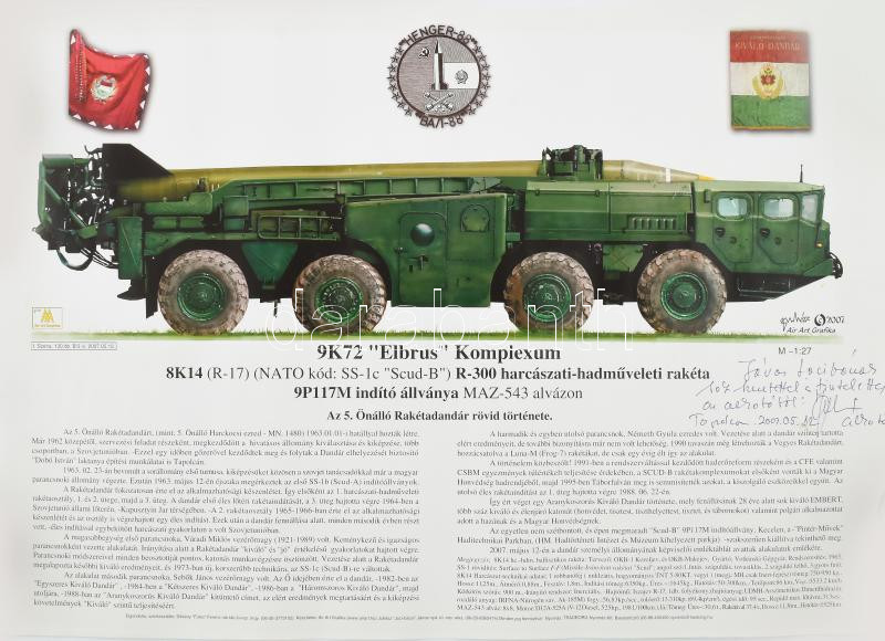 2007 9K72 "Elbrusz" Komplexum, nato: "Scud-B"/R-300 harcászati-hadműveleti rakéta indító-állvány, az alkató Juhász János "Juci-bácsi" által DEDIKÁLT példány, feltekerve, 33x49 cm
