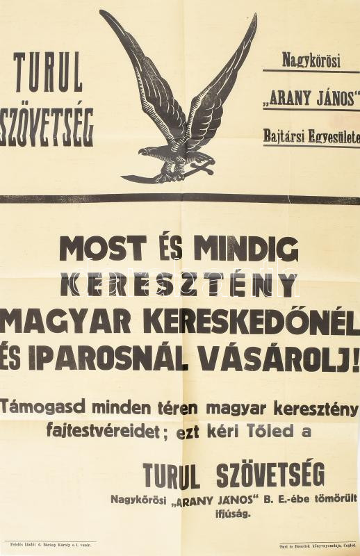 cca 1930 Turul szövetség plakátja 42x62 cm https://www.darabanth.com/de/462-Fernauktion/462.0/Kunst-Dokumente-andere-Sammelgebiete/Plakat~2000014/cca-1930-Turul-szovetseg-plakatja-42x62-cm~II3110895