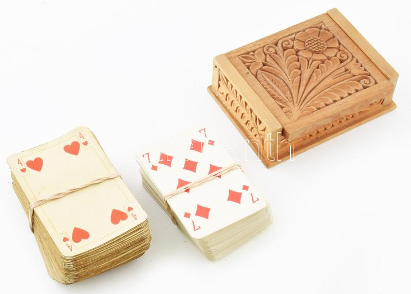 Beschreibung: 2 nagy pakli francia kártya, kártyatartó dobozzal.