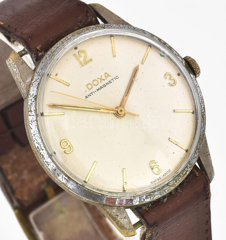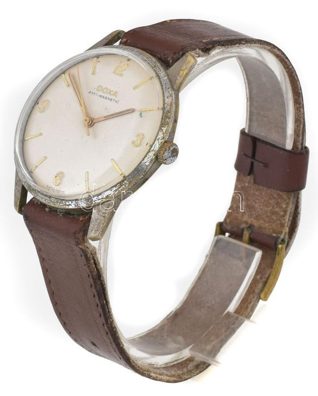 Doxa Anti-Magnetic férfi karóra, mechanikus, bőr szíjjal, működik, rak... https://www.darabanth.com/de/462-Fernauktion/462.0/Kunst-Dokumente-andere-Sammelgebiete/Uhren~500012/Doxa-Anti-Magnetic-ferfi-karora-mechanikus-bor-szijjal-mukodik-rakott-indexekkel-szamlap-d-~II3102315