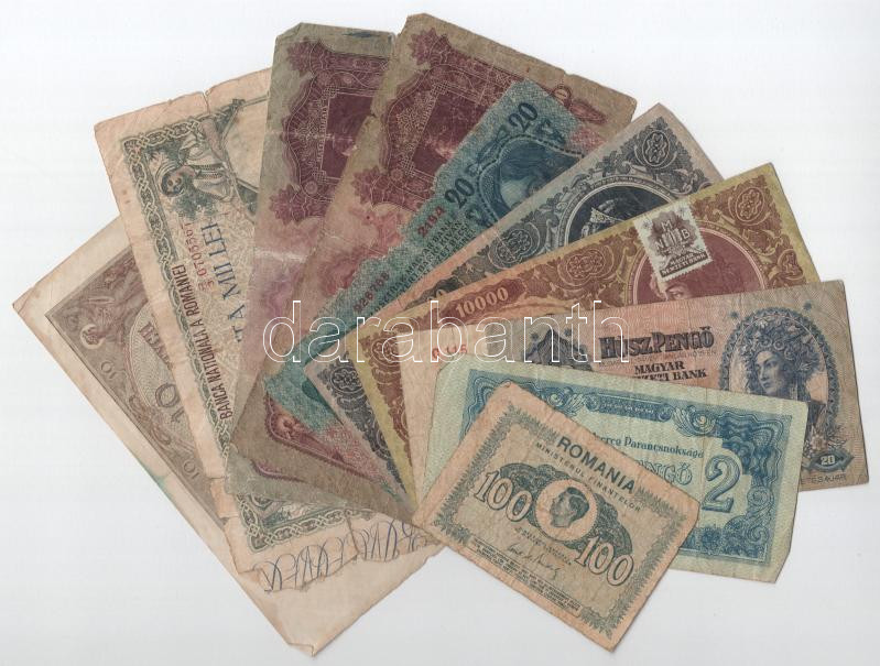 Beschreibung: 10db-os, főleg magyar bankjegyekből álló tétel, közte Lengyelország 1940. 10Zl T:F-G