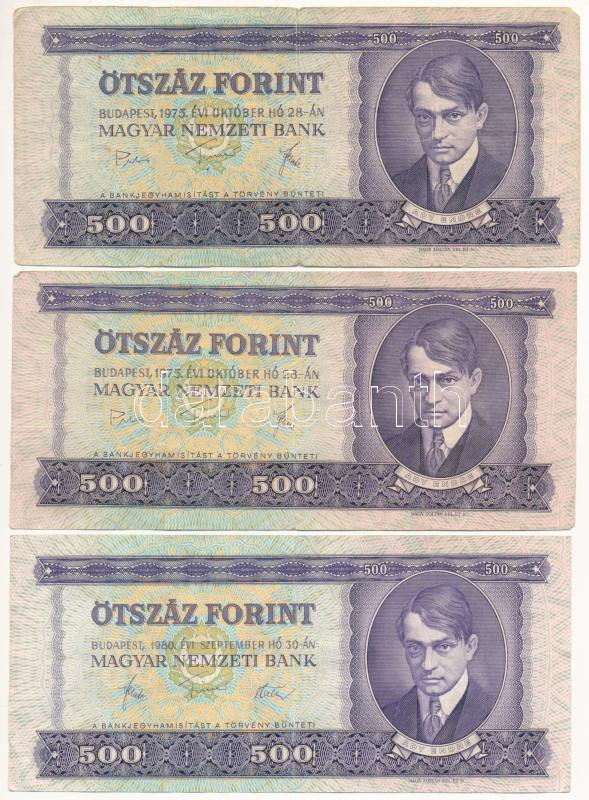 1975-1980. 500Ft (3x) T:F közte szép papír https://www.darabanth.com/de/462-Fernauktion/462.0/Numismatik/Ungarische-Banknoten~1500008/1975-1980-500Ft-3x-T-F-kozte-szep-papir~II3109143