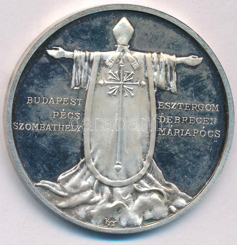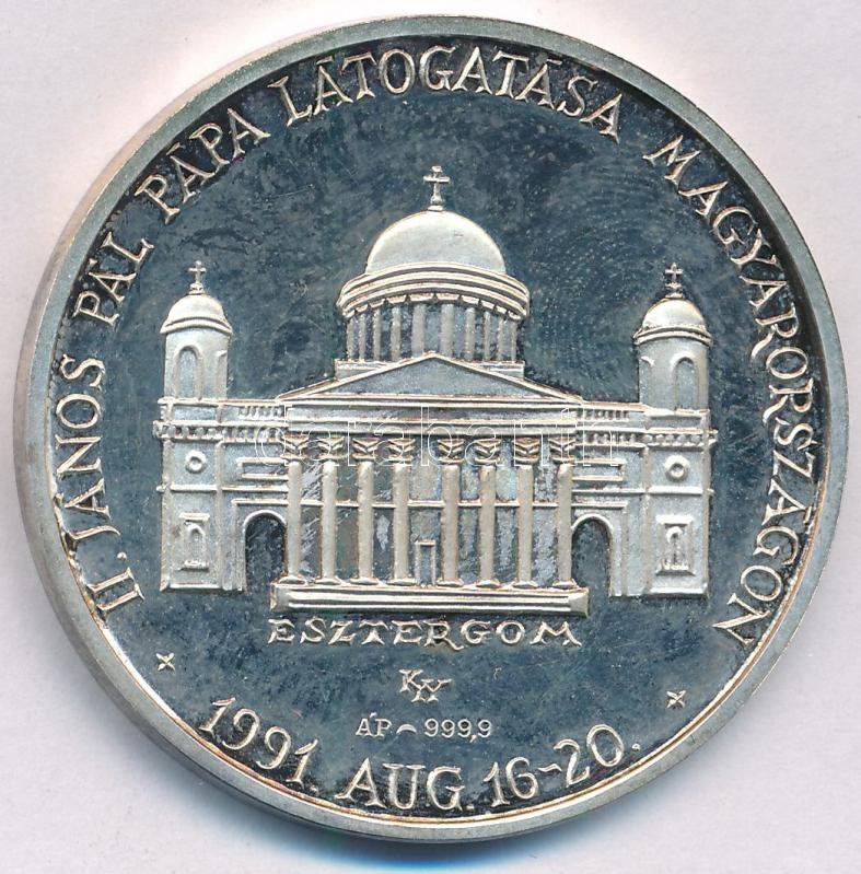 Kiss György (1943-2016) 1991. "II. János Pál pápa látogatása Magyarországon - Esztergom / Budapest, Pécs, Szombathely, Esztergom, Debrecen, Máriapócs" Ag emlékérem (31,12g/0.999/42,5mm) T:AU (PP) patina