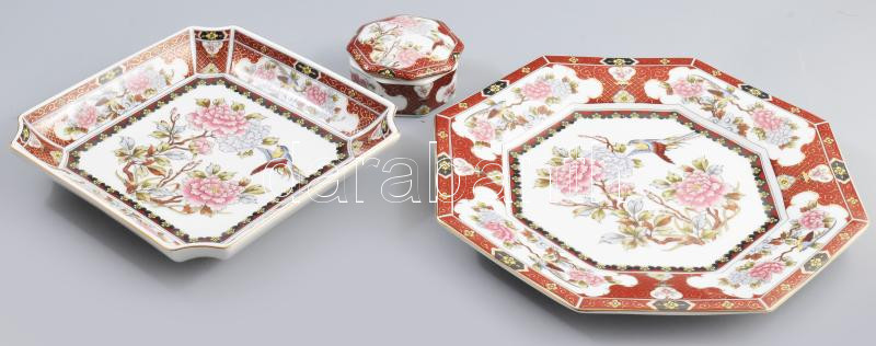 Beschreibung: 3 darab dekoratív japán porcelán tárgy, kínáló, bonbonier. Hibátlan, d: 29 cm alatt