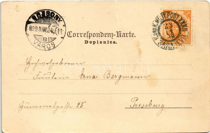 Beschreibung: 1899 (Vorläufer) Sarajevo, Türkinen auf der Strasse / Turkish folklore on the street + "K. und K. Milit. Post XXII Sarajevo" (tear)