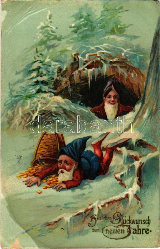 1909 Herzlichen Glückwunsch zum neuen Jahre / Újévi üdvözlet, törpök a... https://www.darabanth.com/de/463-Fernauktion/463.0/Ansichtskarten/GruC39Fkarten-Feste~1500069/1909-Herzlichen-Gluckwunsch-zum-neuen-Jahre-Ujevi-udvozlet-torpok-arany-penzzel-New-Year~II3120158